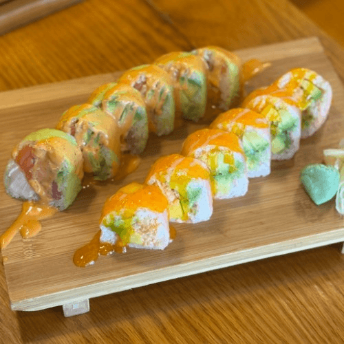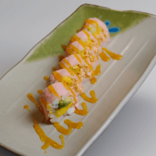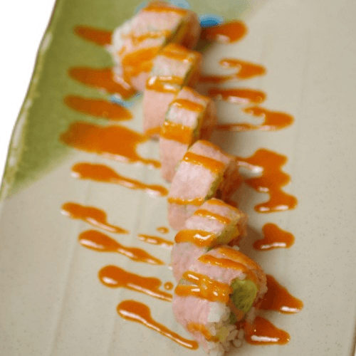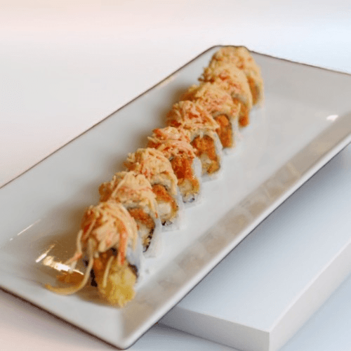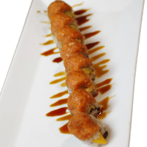 Deep Fried Style, with eel, cream cheese, avocado, and spicy crabmeat inside. Top with spicy mayo, eel sauce and tobiko.