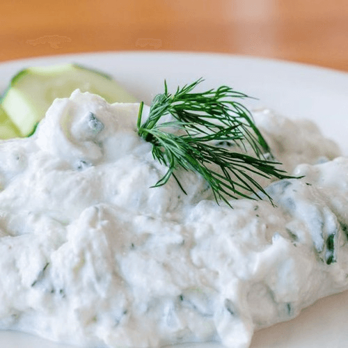 Refreshing Greek yogurt dip with cucumber, garlic & dill.