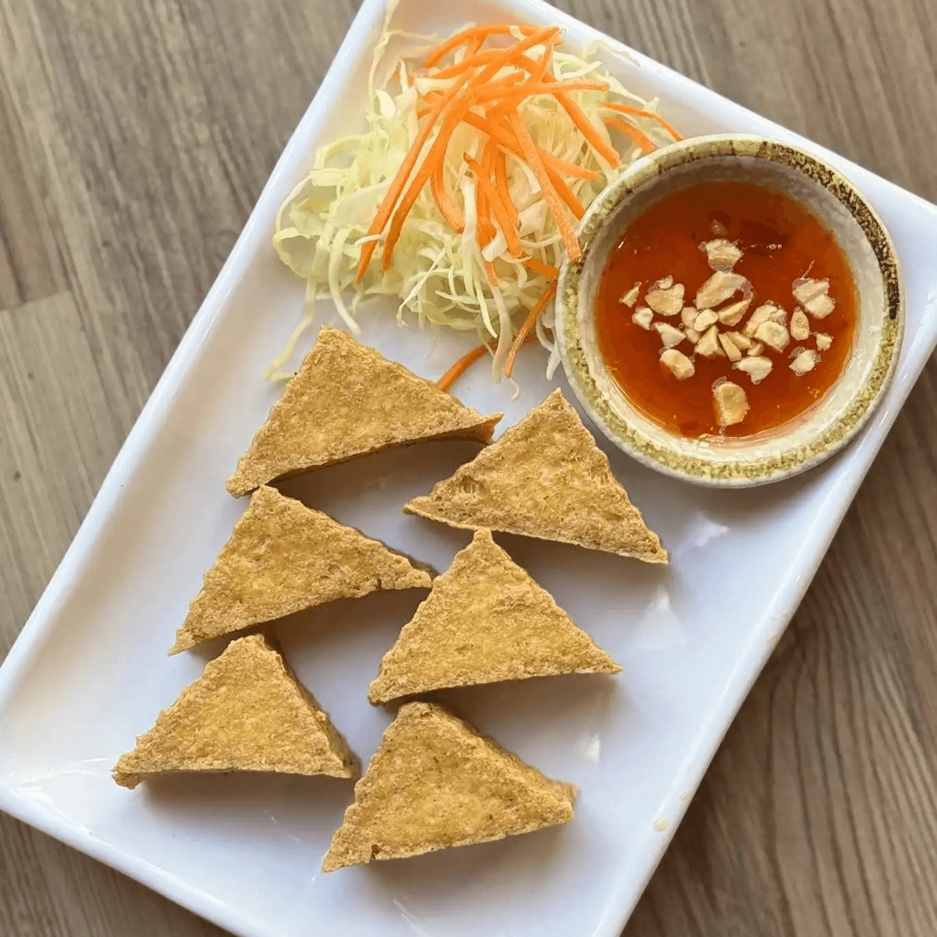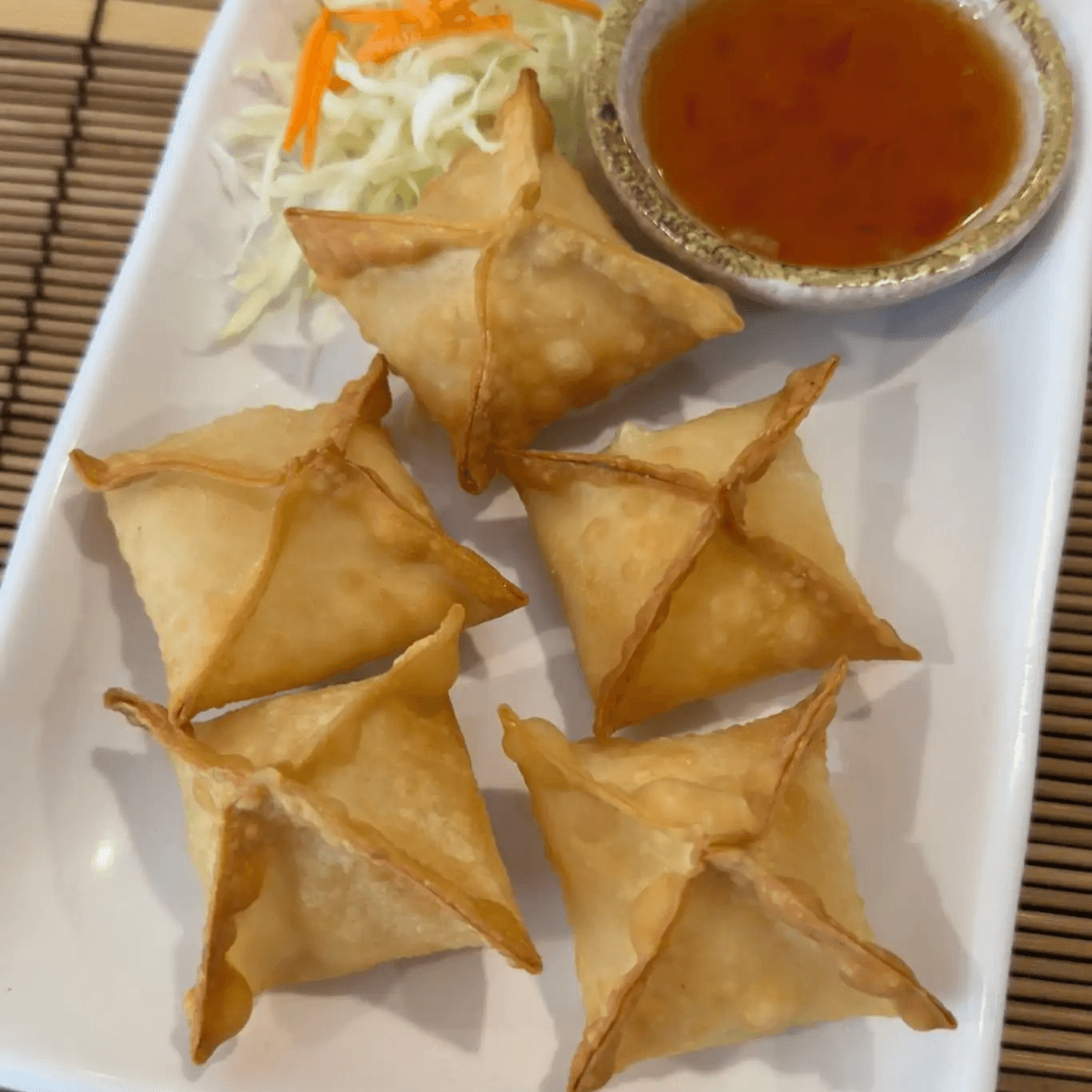 Crispy wonton filled with cream cheese, crabmeat and vegetables, served with sweet & sour sauce.